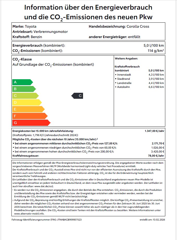 - Energieverbrauch 5,1 l/100 km (komb.)